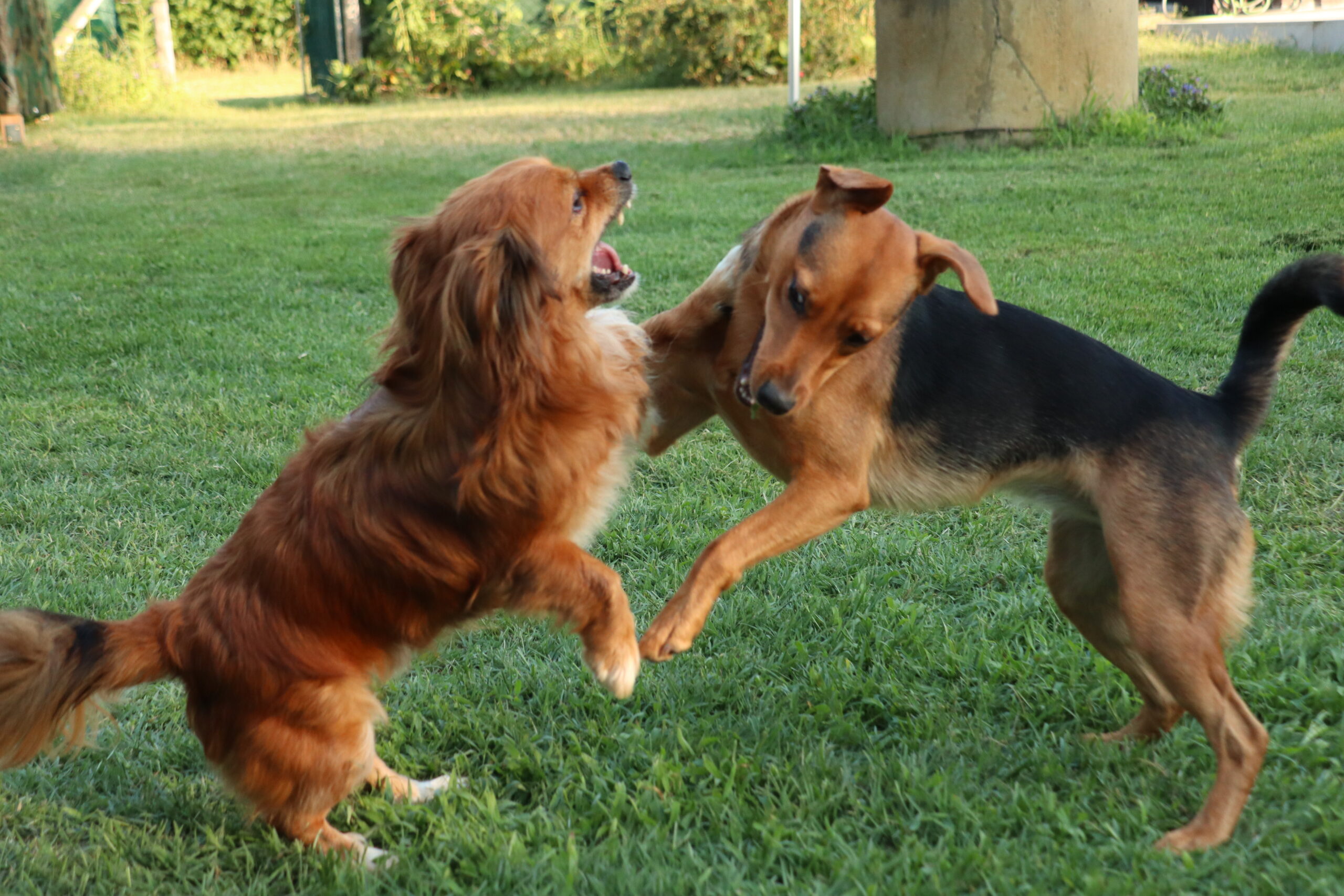 Förderung der sozialen Fähigkeiten durch Interaktion mit anderen Hunden, wenn dieser es will.
