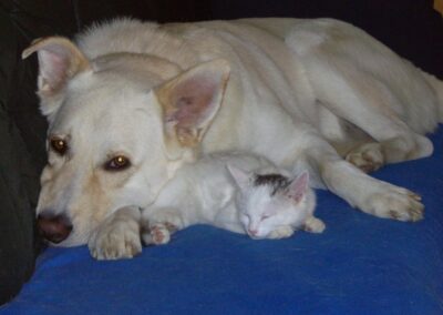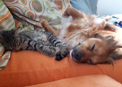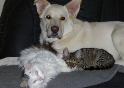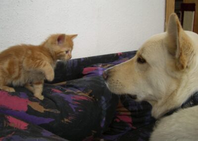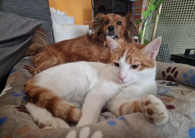 Zwischen 2007 und 2024 wurde unser Zuhause auch das Heim von insgesamt 11 Katzen, die sich wunderbar mit Kitos und Gipsy vertrugen.